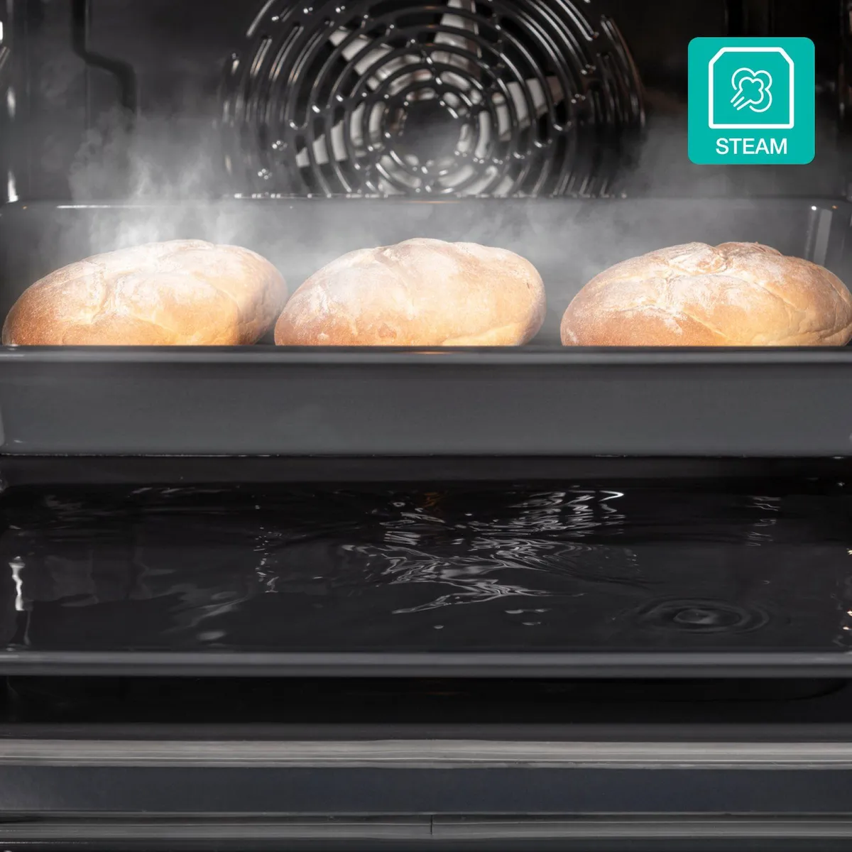EXTRASTEAMПростое выпекание с паром. Программа ExtraSteam с использованием пара создает идеальные условия для увеличения объема хлеба, формирования пышного мякиша и хрустящей корочки. Просто налейте немного воды в неглубокий противень и выберите программу ExtraSteam, а об остальном позаботится духовка.